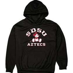 A black Blue 84 hoodie with "SDSU" in white print outlined in red arched over a graphic of Mickey sitting down in red and white print over "AZTECS" in white print outlined in red